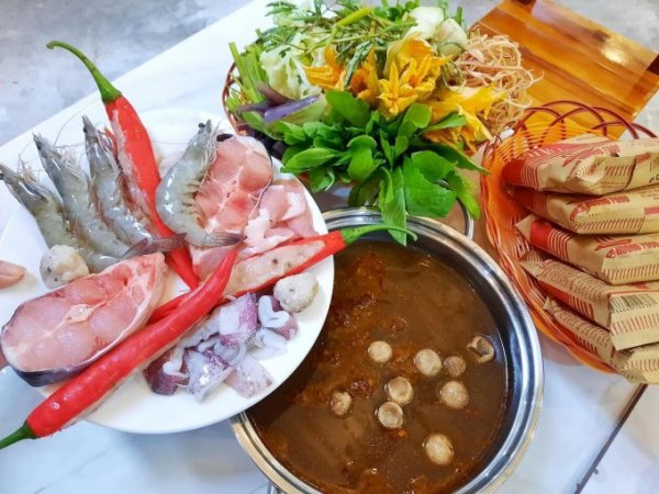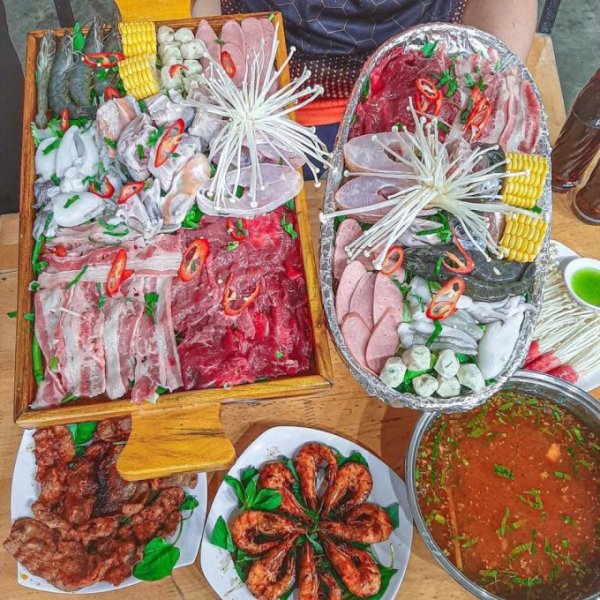 Đến với quán lẩu Cần Thơ này, bạn sẽ ngạc nhiên bởi sự đa dạng các loại lẩu cùng khay topping khổng lồ nào là chả, hải sản, thịt ba chỉ và các loại rau.