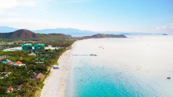 Bãi biển Dốc Lết hiện ra với một vẻ đẹp tinh khôi phủ bởi lớp cát trắng tinh khiết. Nước biển ở đây xanh ngắt trong như ngọc, đặc biệt khá cạn so với các vùng biển khác. Dù bạn có ra xa tới 100m thì mực nước cũng chỉ đến nách người lớn. Ngoài ra, biển ở đây có sóng ít và nhỏ nên rất an toàn, phù hợp với gia đình có trẻ nhỏ hoặc người già.