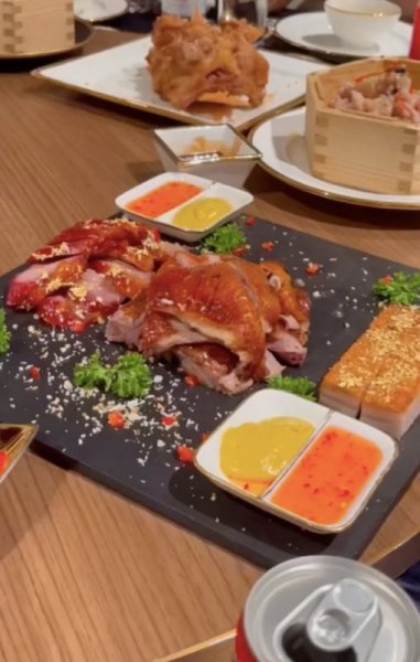 Các món ăn trong bữa tiệc sinh nhật của Chao tại Wyndham Hanoi Golden chủ yếu là món Hoa. Món nào cũng được trang trí tinh tế, sang trọng và đặc biệt có món còn dát cả vàng.
