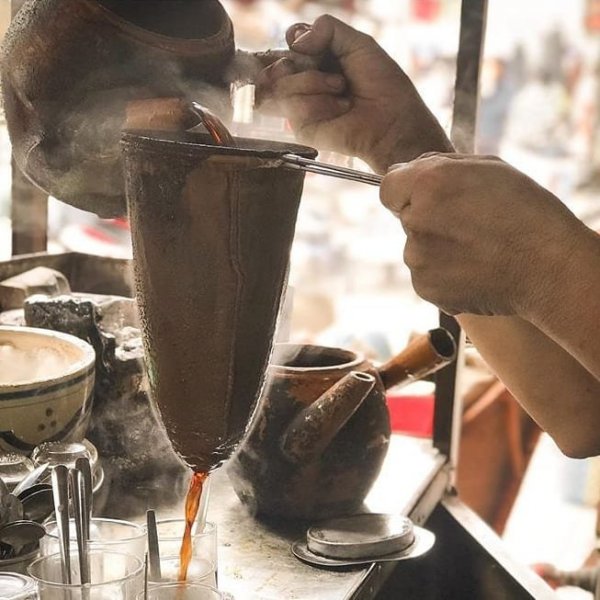 Cafe vợt còn được gọi là “cafe siêu” hay “cafe kho” bởi hình thức pha chế đặc biệt. Theo như cô Hạnh chia sẻ, mỗi ngày cô dậy từ 5h sáng để đun nước sôi trên bếp than, châm vợt cafe và đón những vị khách đầu tiên.