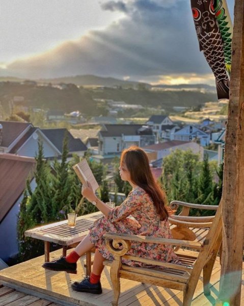 Đặc biệt, Vườn Yên có một góc nhỏ view cực hot, chỉ cần phòng tầm mắt là thu được cả khung cảnh của Đà Lạt. Khi ngồi đây, bạn có thể ngắm trọn vẻ đẹp mơ màng của thành phố, hoặc chụp cho mình những bức ảnh siêu xinh.