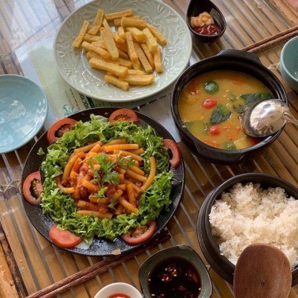 Món cơm chiên ngũ sắc được bày trí bắt mắt, hạt cơm tơi chiên giòn đúng chuẩn không gây cho bạn cảm giác bị ngán. Ngoài ra, món lẩu chao được đánh giá là món "best seller" của quán nhất định không được bỏ lỡ. Lời khuyên nhỏ dành cho bạn để thưởng thức món ăn thanh đạm trong không gian yên bình, bạn nên đến đây vào các ngày trong tuần hoặc nên đặt bàn trước vào cuối tuần để có vị trí tốt nhất.