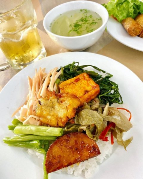 Quán phục vụ đa dạng các món ăn quen thuộc như cơm chiên, cơm niêu, bún riêu, cà ri… với mức giá vô cùng bình dân. Cách bày trí tỉ mỉ, hương vị thanh đạm, vừa miệng nhất định sẽ làm hài lòng những “tín đồ ăn chay”.