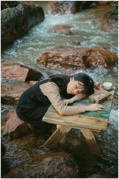 Điều đặc biệt hơn cả của quán này chính là con suối nhỏ được đặt những bộ bàn ghế xinh xinh, bạn có thể vừa nhâm nhi ly nước vừa ngâm chân trong dòng nước mát lạnh này. Chẳng vì thế mà giới trẻ cứ mê tít, đến chơi mà quên cả lối về.