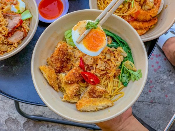Tiệm mì trộn Nha Trang này tuy khá mới nhưng khiến bất kỳ ai thử qua cũng sẽ phát nghiện bởi hương vị đậm đà, vừa vị. Món mì trộn xá xíu ngập tràn topping nào là thịt bằm, gà xé sợi, mực lá… đảm bảo lấp đầy những “chiếc bụng đói”. Sợi mì vàng nhỏ dai dai trộn đều cùng sa tế, tóp mỡ tuy đơn giản nhưng mang lại hương vị “ngon phát ngất”.
