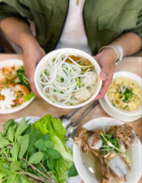 Buổi sáng, quán cô Hòa còn phục vụ bánh canh cá, những miếng thịt cá tươi ngon, sợi bánh canh mềm dai cùng nước dùng ngọt thanh chắc chắn sẽ mang đến cho bạn bữa sáng ngon miệng.