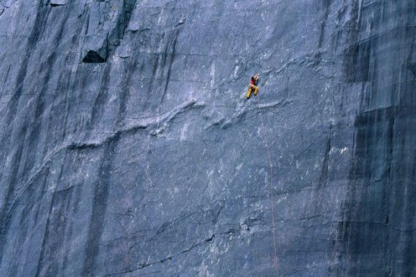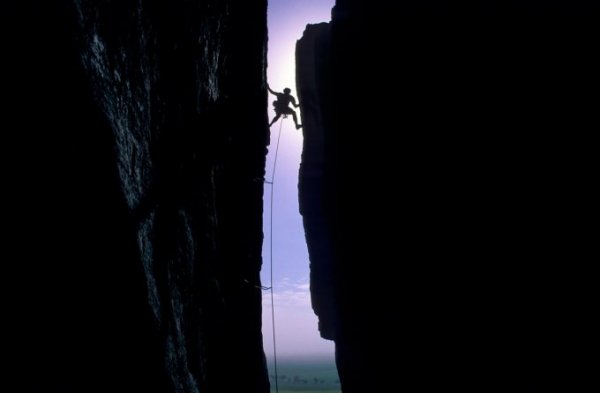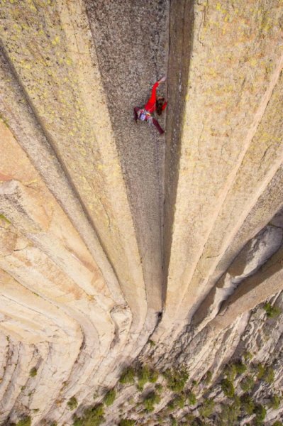 Trong một lần đi tác nhiệp khác, Simon tiếp tục treo chiếc máy ảnh trên một cột sắt vươn ra cách vách đá khoảng 8m để chụp khoảng khắc một du khách đang leo tháp Quỷ tại Wyoming, Mỹ. Tháp Quỷ là điểm đến của những người ưa mạo hiểm, đam mê bộ môn leo núi. Địa điểm này có cấu trúc đá nguyên khối khổng lồ dạng cột đứng, cao khoảng 264 m.