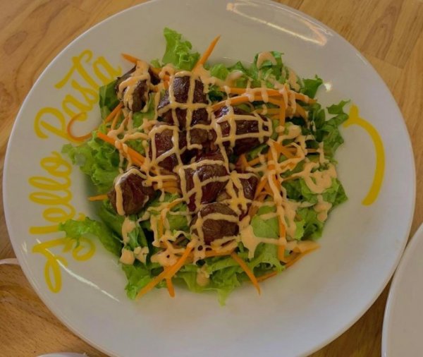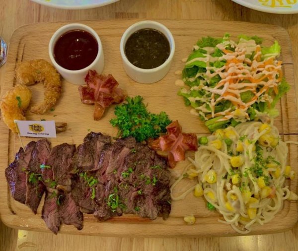 Ngoài ra món bò beefsteak hảo hạng, được ướp vừa vặn cũng ngon không kém. Hello Pasta hiện có hai chi nhánh, bạn có thể thoải mái order trên các app Baemin, Now… để thưởng thức nhiều món ngon với mức giá tiết kiệm.