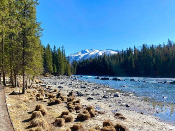 Tuy nhiên ở đây có quặng đá quý lớn nhất Trung Quốc và suối nước nóng mà người dân lan truyền rằng uống vào sẽ được sống lâu trăm tuổi. Điểm đến thứ ba của cô là làng Hà Mộc, hồ Kanas. Làng Hà Mộc vào tháng 5 rất xơ xác, nước suối mới tan băng nên đục ngầu. Nhưng trên đường đến đây cô lại được chiêm ngưỡng những thảo nguyên mênh mông, đàn cừu, bò ung dung gặm cỏ, phía xa xa là núi tuyết. Tới hồ Kanas, cô như "đánh rơi tâm hồn" vì đứng trước dòng nước xanh ngắt, nổi bật giữa nền trời xanh trong. Vé tham quan Hà Mộc là hơn 100 tệ (355k VND) còn Kanas là 253 tệ.Những ngày tiếp theo, Kiều Phùng tới với hồ Sayram, nơi được mệnh danh là "Giọt lệ cuối cùng của Đại Tây Dương".