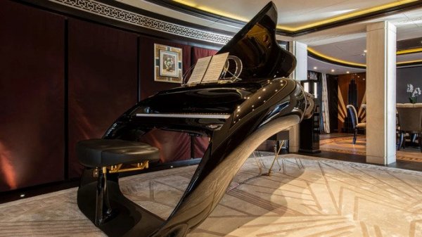 Giữa sảnh phòng khách và boong chính được bài trí một cây đàn piano tự hoạt động không cần người chơi. Piano Schimmel Pegasus là nhạc cụ có bàn phím cong công thái học, âm thanh tinh thể, mặt trên vận hành bằng thủy lực do Luigi Colani thiết kế.