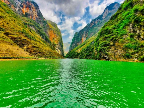Mình đã đi nhiều địa danh có nhiều sông núi khác nhau nhưng quả thật sông Nho Quế có một vẻ đẹp huyền bí mà dịu dàng không lẫn vào đâu được. Trên dòng sông, thuyền lướt tới đâu bạn sẽ cảm nhận được sự thay đổi của cảnh sắc thiên nhiên tới đó, nước xanh ngắt, trong lành mà mát rượi trải dài xa tít tắp như không có hồi kết.