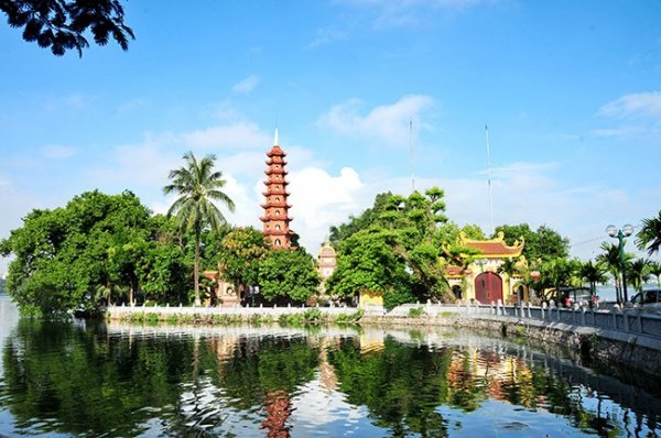 Ở hòn đảo phía Đông Hồ Tây có ngôi chùa mang tên chùa Trấn Quốc. Ngôi chùa được xây dựng từ thời Lý Nam Đế (541-547) với tên gọi ban đầu là "Khai Quốc". Qua nhiều lần tu sửa, ngôi chùa mang phong cách kiến trúc của các thời kỳ, gần đây nhất là năm 2010 chào đón đại hội 1000 năm Thăng Long. Chùa có kết cấu gồm nhiều lớp nhà với ba ngôi chính là Tiền đường, nhà Thiêu hương và Thượng điện nối thành hình chữ Công, theo quy tắc của chùa Phật Giáo. Điểm nhấn tại đây là vườn tháp, với nhiều tháp cổ có niên đại từ thế kỷ 18.