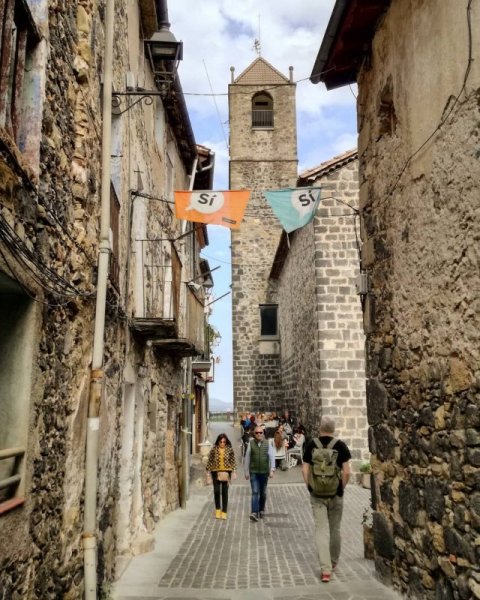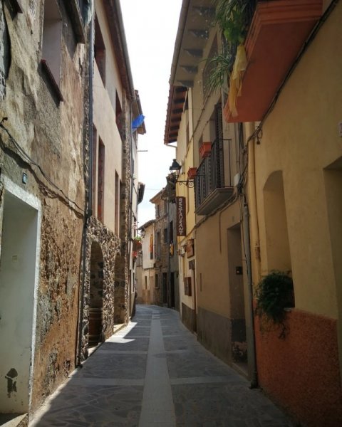 Con phố chính của Castellfollit uốn lượn qua toàn bộ thị trấn. Con đường nhỏ bé, dường như đang bị ép chặt bởi các ngôi nhà đang "căng mình" chắn ở hai bên vách đá. Ảnh: @sunsiesunsie.