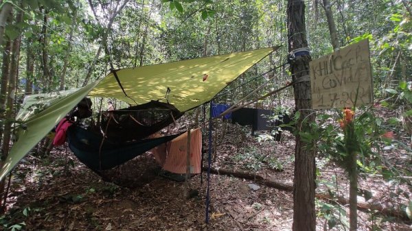 Để tránh tiếp xúc với người lạ, nhóm của Huy dựng trại, làm lán ở sâu trong rừng. Khoảng 2 tuần đầu, 2-3 ngày họ xuống núi một lần để mua lương thực. Đến ngày 17/7 thì Vũng Tàu áp dụng chỉ thị 16, nhóm người này phải vào rừng hái măng, hái nấm, bắt cua đồng ăn qua ngày.