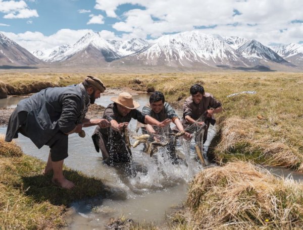 Họ là những kỹ sư bản địa, đang làm khảo sát địa phương để chuẩn bị xây dựng tuyến đường mới nối với Trung Quốc. Công việc xong xuôi, họ tranh thủ kéo nhau ra hồ bắt cá, vui chơi, khoảnh khắc này đã được ghi lại qua ống kính của Jacob. Niềm vui đơn sơ là bắt được nhiều cá cũng người dân Afghanistan nở nụ cười rạng rỡ trên môi.