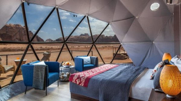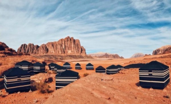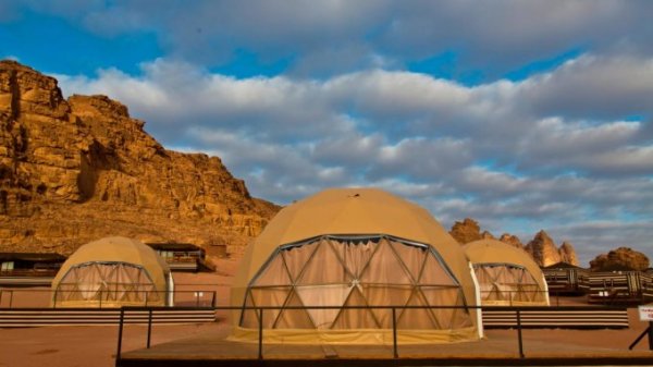 Giáp với những ngọn núi gồ ghề và sa mạc Ả Rập tuyệt đẹp, khu cắm trại nằm trên sa mạc Wadi Rum là lựa chọn lý tưởng cho khách du lịch. Đến Wadi Rum, bạn sẽ có cảm giác như đang đắm mình trong không gian 'sao Hỏa'. Ở trong khách sạn hạng nhất mà vẫn gần gũi với thiên nhiên, đây là nơi nhiều du khách sẽ dừng chân mỗi khi tới Jordan.
