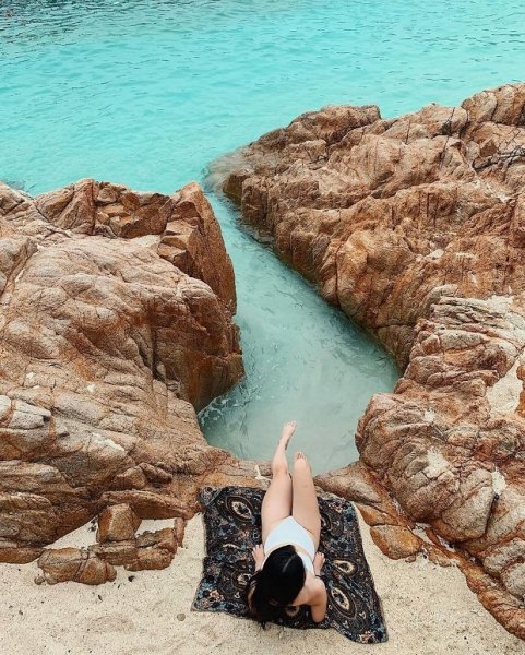 Bãi này khá nhỏ, cát rất sạch. Nước ở đây có màu xanh trong như nước hồ bơi khiến du khách cứ ngỡ đây là bãi nhân tạo. Tại đây, bạn cũng có thể cắm trại.