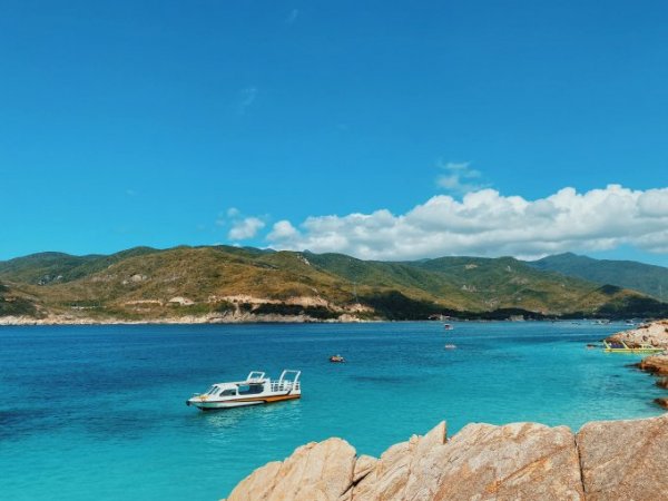 Nằm ẩn dưới chân đèo trên cung đường biển Vĩnh Hy – Bình Tiên, hòn đảo xinh đẹp hiện ra với hang đá nước ngọt rất đặc biệt. Làn nước trong xanh nhìn rõ những dải san hô bên dưới, bãi biển thoai thoải với nhiều tảng đá hình thù, màu sắc sinh động, kiểu dáng phong phú. Ngoài ra, nơi này có cả những tảng đá còn phủ kín rêu xanh.