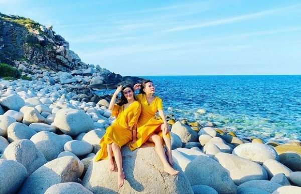 Đến đây, bạn sẽ ấn tượng với khung cảnh nên thơ của bãi đá. Bên dưới là màu xanh của biển, phía trên là những hòn đá khổng lồ, to và tròn, trông như những quả trứng khủng long xếp chồng chất lên nhau. Tuy nhiên, đây không phải là bãi tắm lý tưởng.