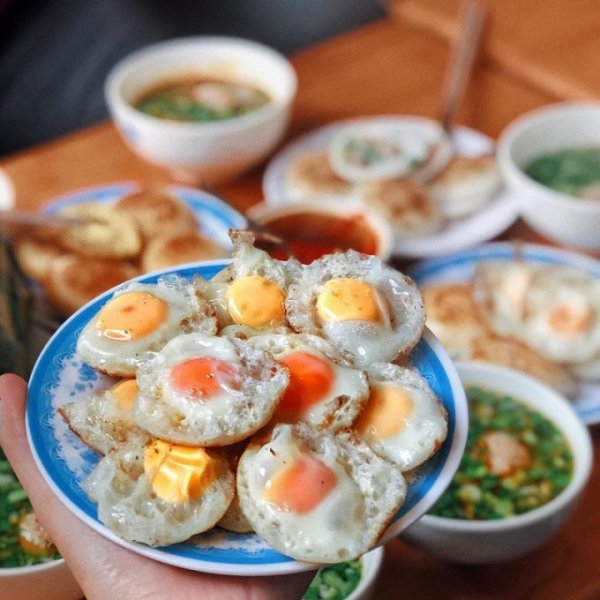 Đây là đặc sản nằm trong danh sách những món ăn không thể bỏ qua khi đến Ninh Thuận. Với những chiếc bánh được đúc từ bột gạo và đầy ắp “topping”: trứng, thịt, tôm, mực tươi sống… kèm theo nước chấm được chế biến rất đặc biệt từ đậu rang xay nhuyễn, thêm vị chua của chanh và mùi thơm của tỏi, hành phi sẽ tạo nên hương vị chấm rất khó quên.