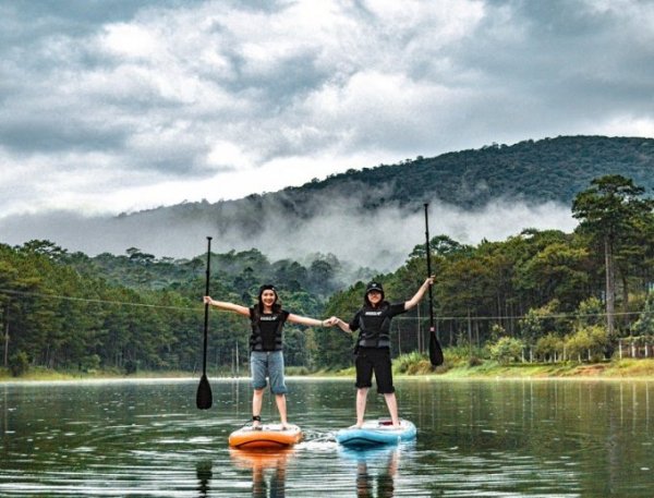 3. Chèo SUP đón bình minh trên hồ Tuyền Lâm