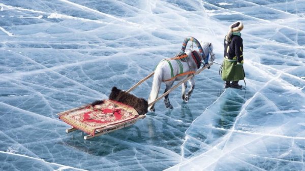 Hồ Khovsgol vào mùa đông trở thành một sân băng rộng lớn.