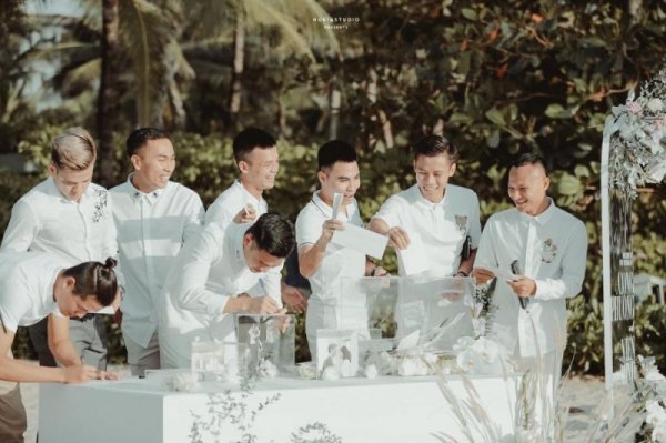 Dàn tuyển thủ tại InterContinental Phú Quốc để chung vui cùng đôi uyên ương. Ảnh: NukiA Studio.