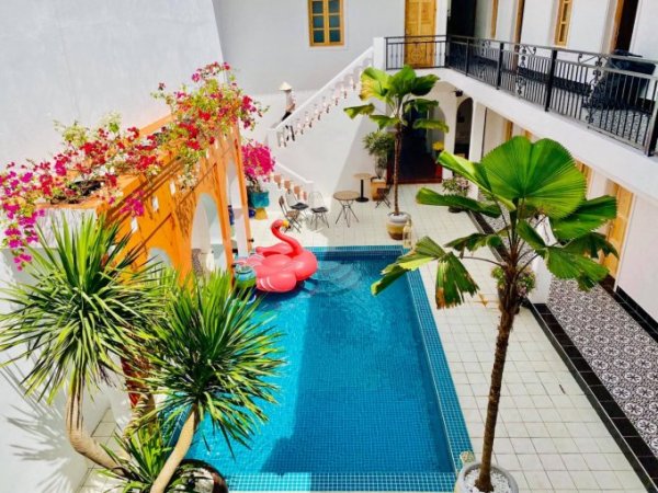 Điểm nổi bật: Được thiết kế theo kiến trúc Địa Trung Hải nổi bật với màu xanh, trắng, có bể bơi.