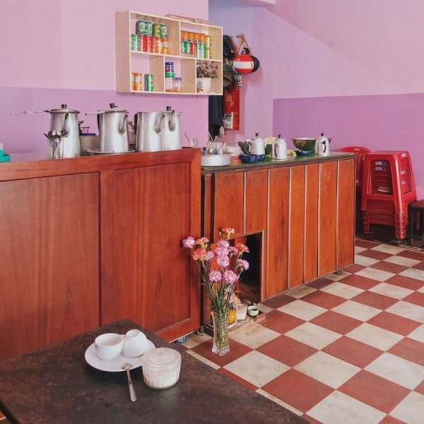 "Quán be bé nằm ngay mặt đường trung tâm, có màu tím mộng mơ rất Đà Lạt và cái nền gạch bàn cờ thật sự đem lại cảm giác rất dễ chịu và đầy hoài niệm. Cà phê ngon và thơm lắm, giá 15.000đ/ly", Chiaki nhận xét.