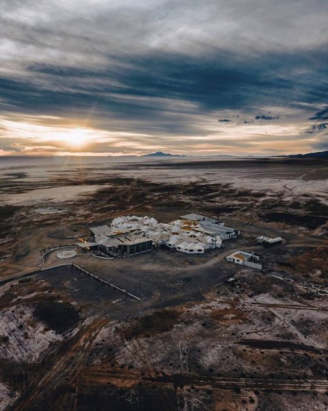 Từ bầu trời nhìn xuống, du khách vẫn có thể nhìn thấy kiến trúc hình thánh giá vuông Andean do khách sạn Muối tạo thành.