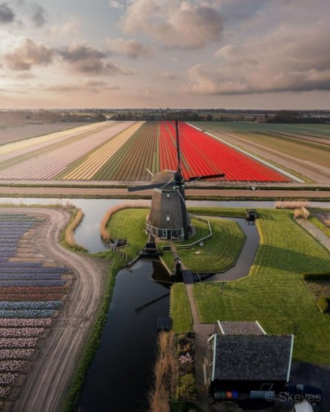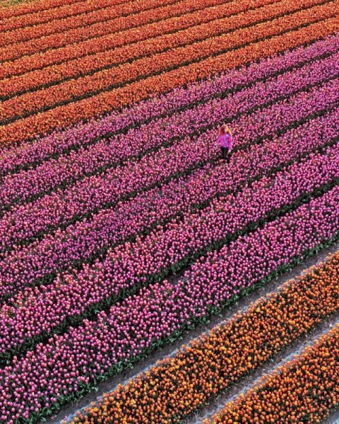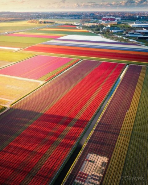 Cách tốt nhất để chiêm ngưỡng cánh đồng hoa tulip là ngắm toàn cảnh từ trực thăng. Ảnh: @nick_skeyes