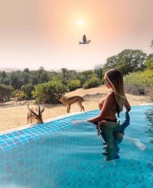 Phòng suite lấy cảm hứng từ Bedouin (bao gồm hồ bơi riêng và dịch vụ quản gia) có kiến trúc mở, tạo điều kiện cho những chú linh dương đến gần với du khách. Ảnh: @alicinhaprado
