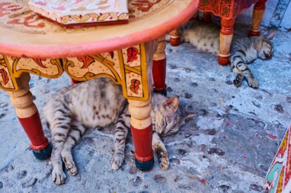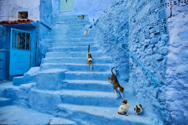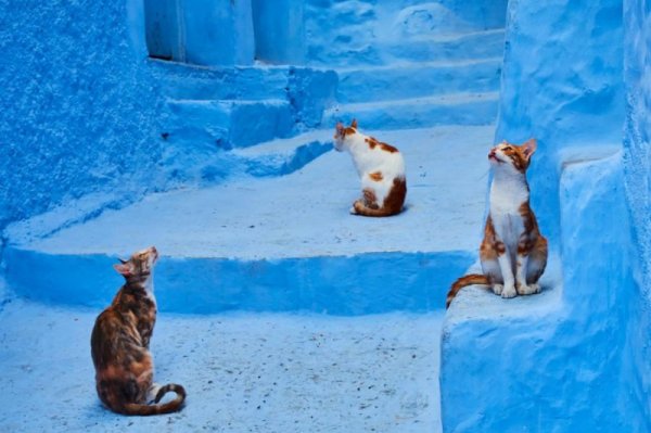 Có thể dễ dàng bắt gặp những chú mèo tự do đi lại trong mọi ngõ ngách, đường phố Chefchaouen.