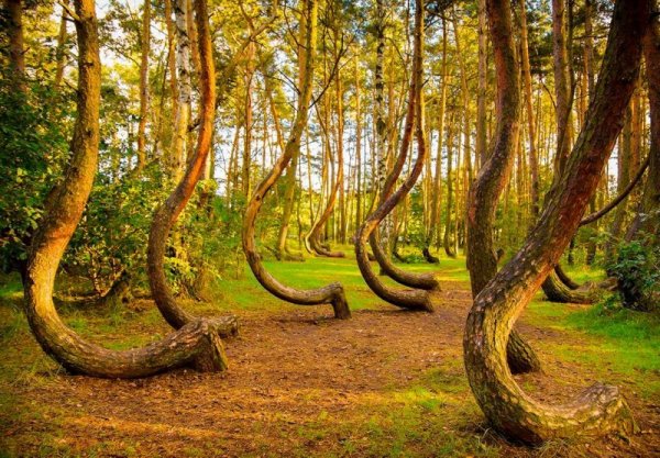 Chưa dừng ở đó, những gốc cây tại khu rừng có hình thù quái dị mà không rõ lý do. Phần gốc của những chiếc cây bị uốn cong một góc 90 độ rồi vươn thẳng lên trời.