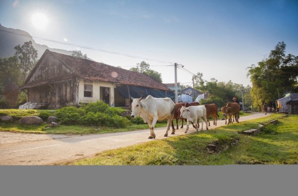 Ngay từ trên đường đi, khung cảnh thiên nhiên hiện ra trước mắt là những rặng cây xanh mát, những thảm cỏ đồng quê bạt ngàn. Phía xa xa là những ngôi nhà nhỏ đơn sơ, nằm bên đại dương xanh thăm thẳm.