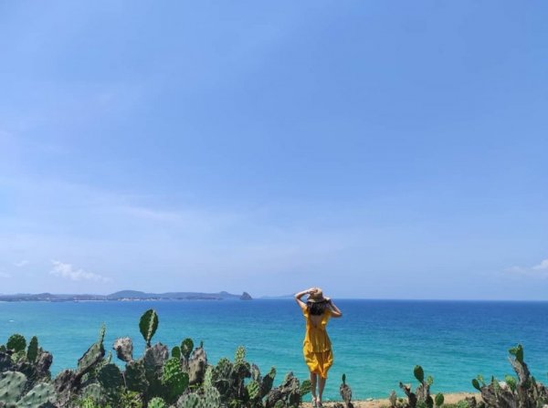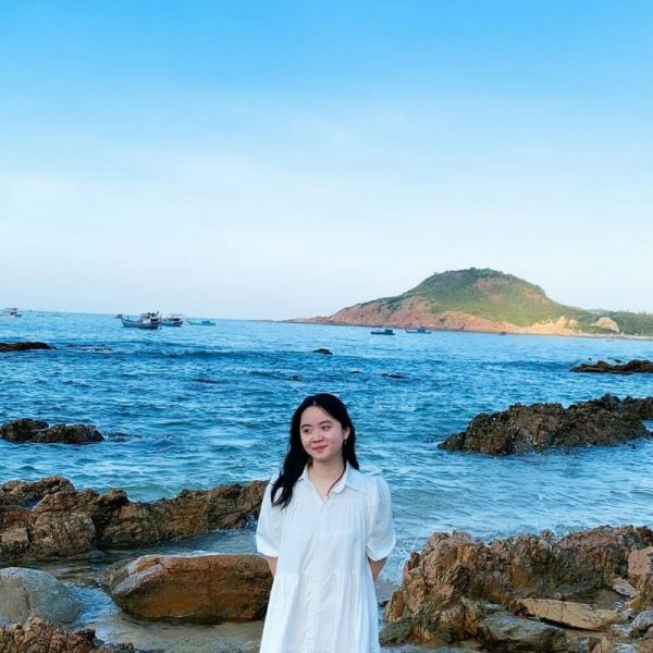 Với trước mặt là bãi biển trong mát, xanh thẳm cùng phía sau lưng là những dãy đồi núi kỳ vĩ, xa xa là những bãi đá lớn nhỏ với nhiều hình dáng kỳ thú. Tất cả tạo nên một bức tranh thiên nhiên đẹp cứ ngỡ như đang mơ.
