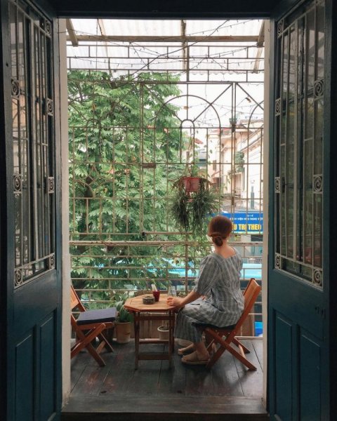 Càng thú vị hơn, khi The Little Plan café còn có một ban công nhỏ xinh, nơi có vị trí tuyệt vời để bạn có thể ngồi đón nắng, nhâm nhi ly cà phê thơm nồng và ngắm nhìn phố phường Hà Nội luôn đẹp dù trong khoảnh khắc nào.
