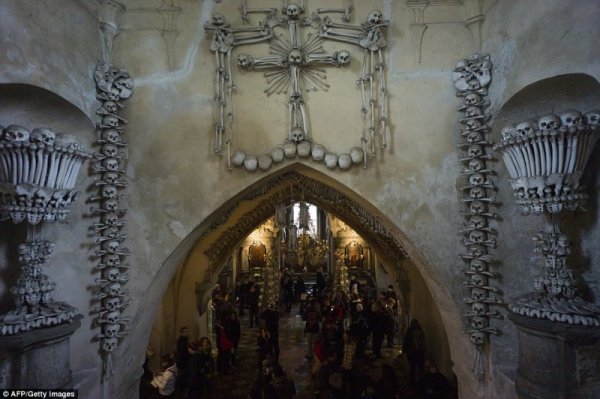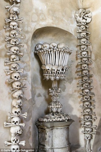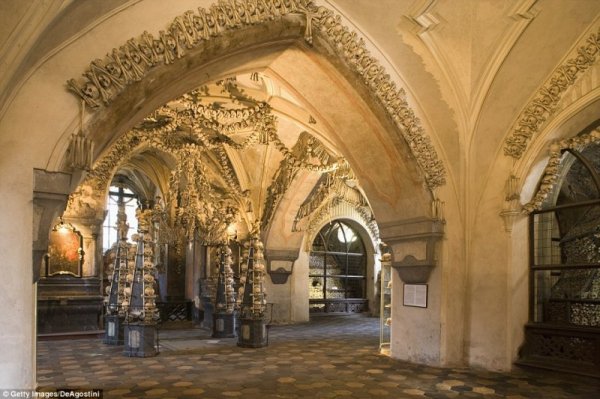 Được trang trí từ 40.000 bộ xương người, Sedlec Ossuary được mệnh danh là nhà thờ xương. Câu chuyện về nhà thờ kỳ lạ này được bắt đầu vào năm 1278, khi Vua của Bohemia cử trụ trì của Tu viện Xitô Sedlec đến Jerusalem. Người này đã đến Jerusalem cùng một lọ đất từ Golgotha, nơi được cho là địa điểm xảy ra vụ đóng đinh Chúa Giêsu, và rải nó xung quanh nghĩa trang địa phương.