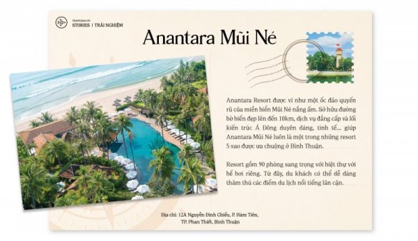 Khi được hỏi về kỉ nghỉ tại Anantara Mũi Né, travel blogger Nguyễn Hoàn Hảo chia sẻ: “Mình đã có dịp ghé thăm một số resort trên khắp cả nước, nhưng khi đến với Anantara Resort Mũi Né thì yếu tố thiên nhiên tại nơi này khiến mình ấn tượng hơn cả. Với một người yêu cây cối như Hảo, đây là một trong những trải nghiệm resort mà mình cảm thấy thích thú nhất từ trước đến nay".