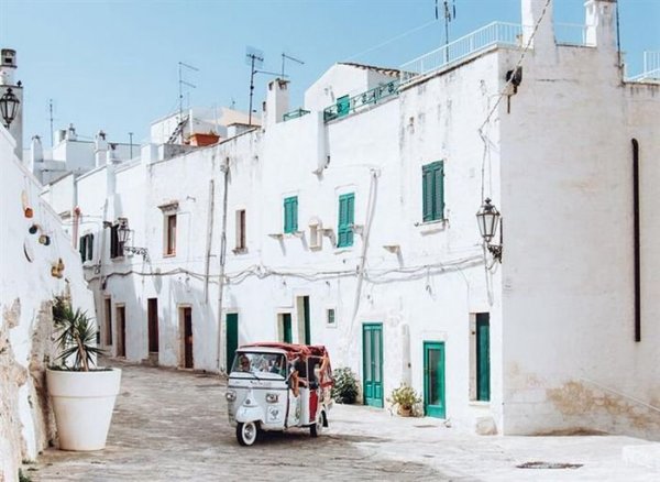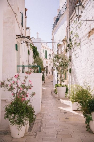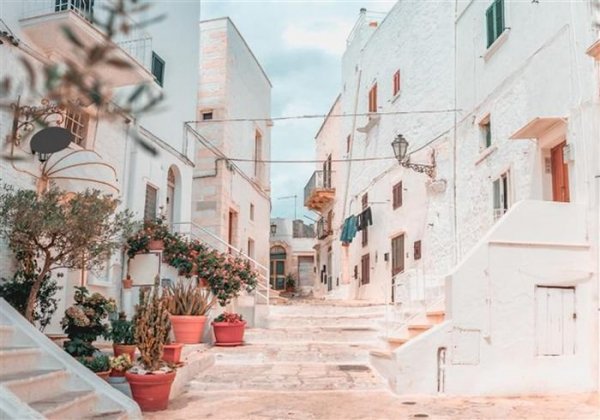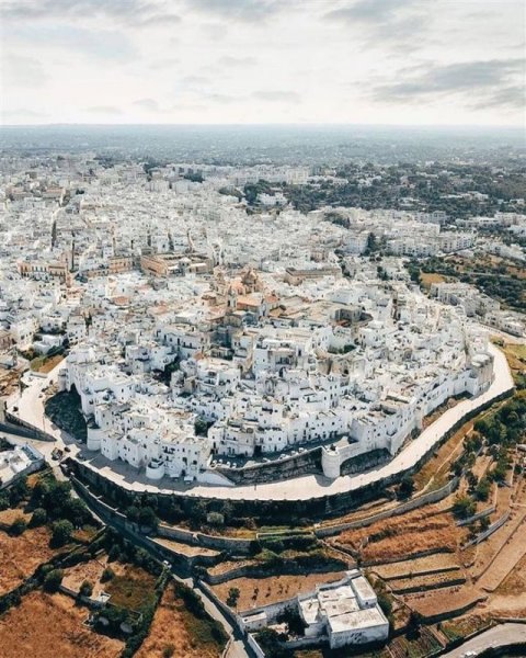 Cả thành phố được phủ một màu trắng, từ những bức tường cho tới các ngôi nhà. Đó cũng là lý do khiến Ostuni được gọi là Thành phố Trắng. Nơi này là sự hoà quyện vô cùng hài hoà giữa nét hiện đại và cổ kính, với những kiến trúc thời trung cổ và cảnh quan rực rỡ của bờ biển Adriatic, xen vào đó là các khách sạn và nhà hàng sang trọng.
