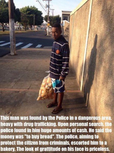 #4: Chàng thanh niên được cảnh sát bắt gặp ở một khu vực nguy hiểm, trong người lại có khá nhiều tiền mặt. Cảnh sát khám phá ra anh chàng đang trên đường đi... mua bánh mì, nên đã hộ tống chàng trai trẻ đến tiệm bánh an toàn.
