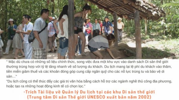 Chủ trương lập hồ sơ di tích lịch sử địa đạo Củ Chi trình UNESCO ghi vào danh mục Di sản thế giới cũng nhận được sự ủng hộ và đồng tình từ phía doanh nghiệp du lịch. Ông Nguyễn Văn Tấn, Chủ tịch HĐQT công ty TNHH TNT (TP.HCM) cho rằng: "Địa đạo Củ Chi xứng đáng trở thành Di sản thế giới và cần được đầu tư một cách đồng bộ để thúc đẩy du lịch". Thời gian qua Địa đạo Củ Chi đã là điểm đến quen thuộc của du khách trong nước và quốc tế, đặc biệt đối tượng du khách Nhật Bản và Mỹ thường đam mê văn hóa lịch sử.