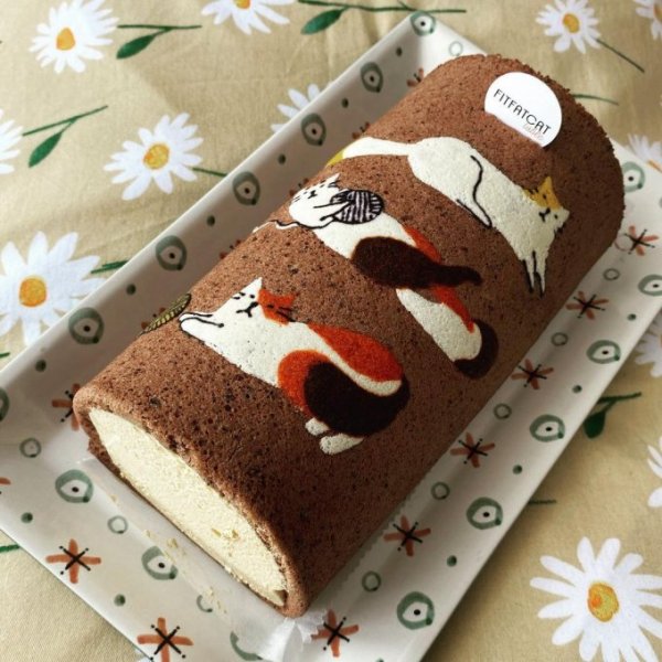 Nếu bạn vừa yêu mèo lại thích đồ ngọt, những chiếc bánh bông lan cuộn (roll cake) độc nhất vô nhị tại fitfatcat sẽ là "một mũi tên trúng hai đích". Menu bánh của quán khá đa dạng vì bên cạnh bánh kem hình mèo còn có tiramisu, bánh mì hoa cúc, mousse... Tuy vậy, chiếc bánh cuộn hình mèo vẫn được nhiều thực khách ưa thích hơn cả.