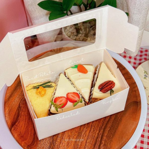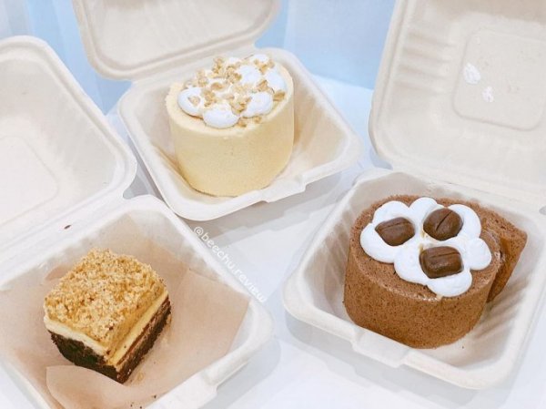Nhận xét từ bạn @manyfoodinhere: "Trước tiên phải khen về hình thức cái đã, sản phẩm đựng bánh là bằng hộp bã mía, nĩa gỗ thân thiện với môi trường. Ngoài ra các bạn không thấy logo trên hộp là tại vì tiệm chủ trương bảo vệ môi trường nên tất cả như Logo, hộp nhựa đều không xuất hiện nhé".