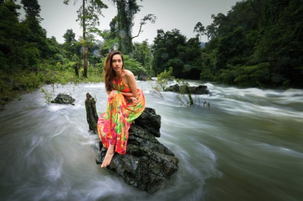 Tiếp theo, Á hậu Hoàng My cùng đoàn du lịch di chuyển đến “ngọn nguồn” của dòng lũ - Suối nước Moọc. Đoạn đường rừng này ẩm ướt, sình lầy và khá nguy hiểm. Tuy nhiên, vừa đặt chân đến đây, cảnh quan hùng vĩ và diễm lệ của thiên nhiên khiến Á hậu không khỏi ngạc nhiên. Sự cuồn cuộn và mạnh mẽ của nước suối nguồn tạo nên nguồn cảm hứng cho Hoàng My. Vẫn là một thiết kế của NTk Adrian Anh Tuấn nhưng bộ trang phục lần này lại phản ánh tinh thần của suối nước Moọc. Phần cổ yếm nữ tính giúp khoe ra phần lưng trần nữ tính, vừa thể hiện nét quyến rũ, vừa bí ẩn như nét đẹp của thiên nhiên nơi đây. Mái tóc dài thướt tha của Hoàng My cùng thần thái tạo dáng giúp bộ ảnh thêm phần đặc sắc.