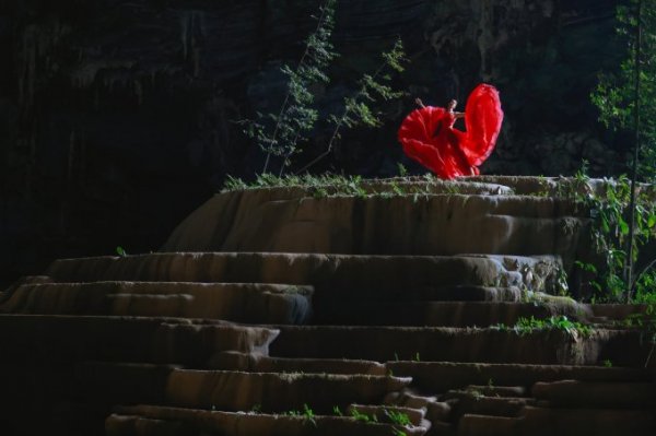 Cuối cùng, Á hậu Hoàng My dừng chân tại hang Tiên - nơi được mệnh danh là “thiên đường” với những cảnh sắc hùng vĩ, tráng lệ. Bộ trang phục của NTK Lý Giám Tiền với phần tà áo bay bổng được Á hậu ưu ái lựa chọn khi chụp ảnh tại đây. Khung cảnh hùng vĩ, bí ẩn nhưng vô cùng diễm lệ hiện ra trước mắt với những thác nước, bậc thang đá, Á hậu Hoàng My thực hiện những cú tung váy, xoay người đầy kiêu hãnh, cảm nhận vẻ đẹp “mê người” của hang Tiên. Hình ảnh vẻ đẹp Hoàng My cùng sắc đỏ rực rỡ của chiếc váy ở giữa lòng hang Tiên, khiến người xem liên tưởng đến một “bông hoa” đang độ khoe sắc rực rỡ nhất giữa thiên nhiên đất trời.