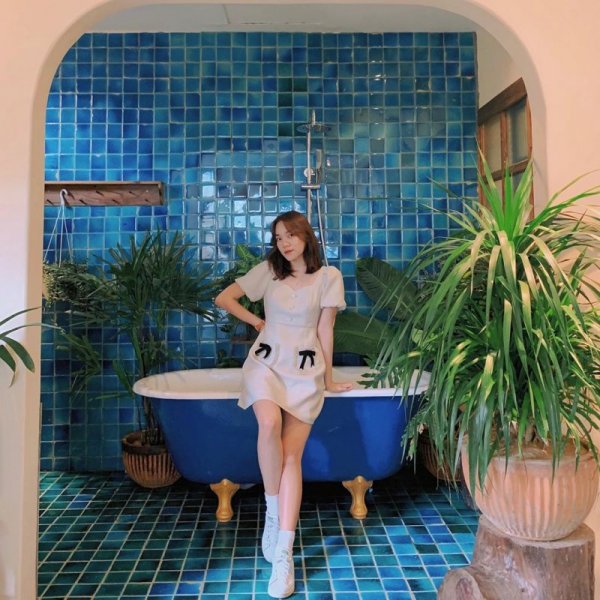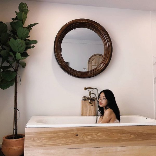 Nếu ngại ngùng thì vẫn cứ bận cả cây trắng như thế này để làm dáng bên bồn tắm cũng đủ xinh. Ảnh: @ttaammtttt