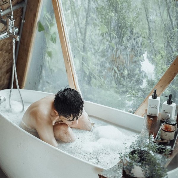 Chẳng cần cầu kỳ, chỉ cần thoát y bên bồn tắm đầy xà phòng là có ngay hình đẹp. Ảnh: @dainguyen198.