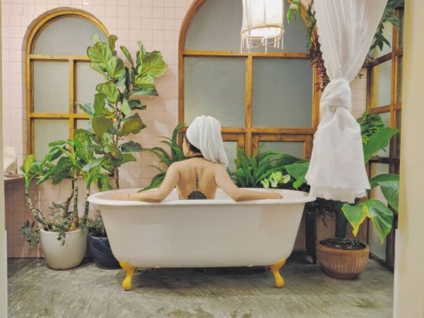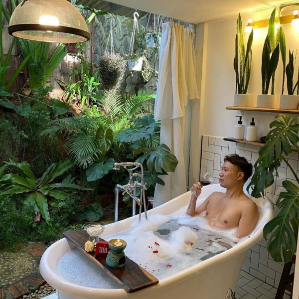 Bồn tắm lộ thiên nhưng vẫn đảm bảo riêng tư nên cứ yên tâm pose hình nhé. Ảnh: @simon_tomorrow.
