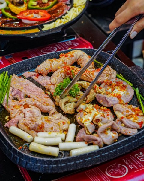 Đây là quán về đồ nướng đang nổi trong cộng đồng review hiện nay. Cũng không quá khó hiểu cho độ “hot” đó vì một phần thức ăn ở đây được đánh giá là khá đầy đặn gồm lòng, thịt nướng nào là tokbokki... chỉ 249.000đ. Nguyên liệu nhìn chung là được sơ chế sạch sẽ, vệ sinh, ướp gia vị đậm đà, bắt vị.